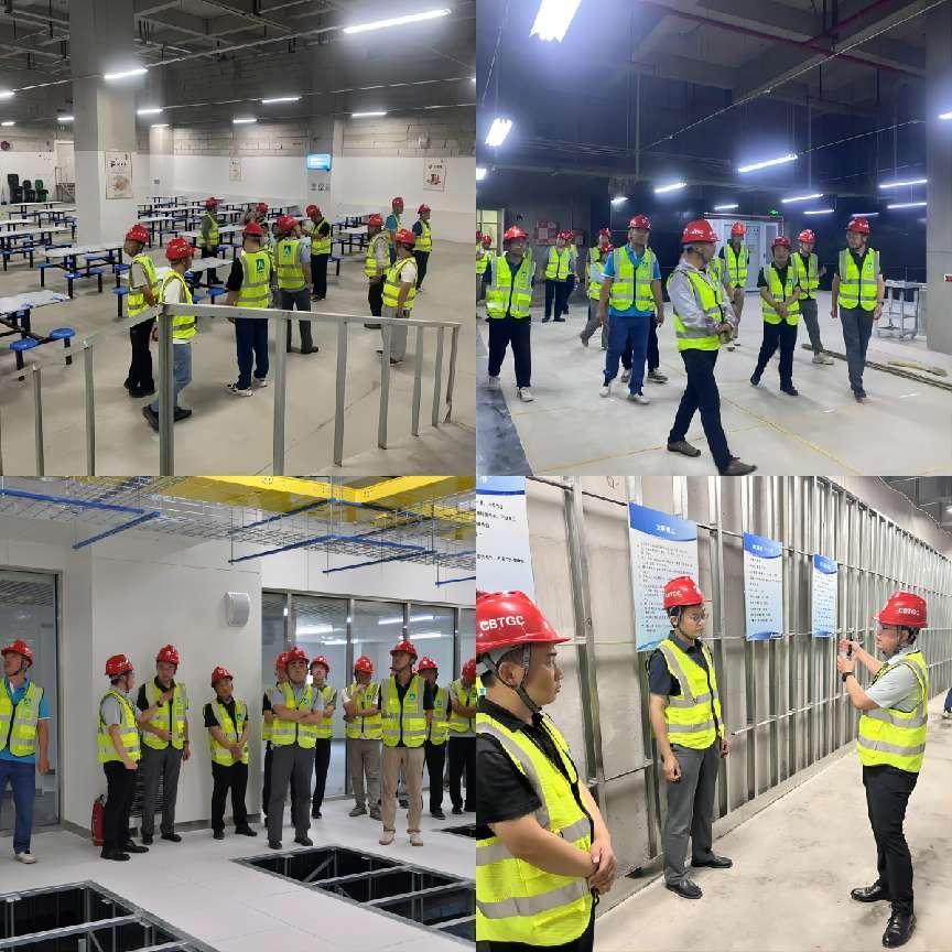 观摩人员深入项目现场,实地参观了现场标准化临建、封闭式加工区、材料堆放区、安全讲评台、施工作业区、员工就餐区、办公区、智慧化工地、高密机房样板区等工地设施,并给予一致好评。