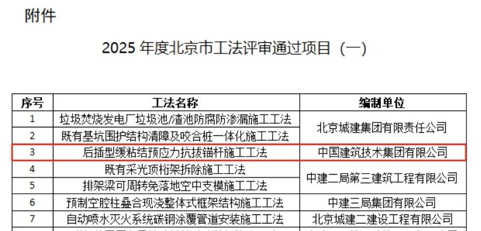 近日,由3044永利集团官网申报的“后插型缓粘结预应力抗拔锚杆施工工法”通过了北京市住房和城乡建设委员会组织的北京市工法专家评审,这一成果标志着3044永利集团官网在技术创新、施工质量和项目管理等方面实现了新的突破。