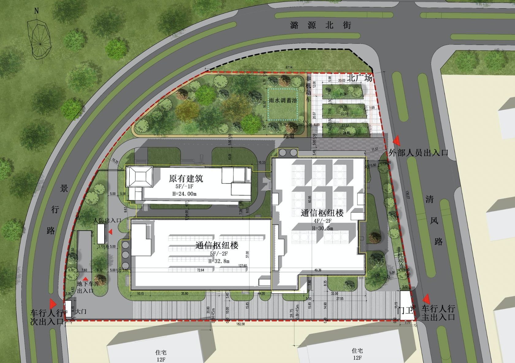 项目在保留原有通信楼基础上,在南侧及东侧新建一座L型通信枢纽楼。项目建成后,可以满足国际出口设备和互联网安全设备扩容需求,同时打造国际一流的物联网、大数据分析、云计算及各类智慧应用基地,并为中国电信与中国移动提供机房,充分满足城市副中心办公区及整个城市副中心区域未来多样化的智慧通信需求以及网络安全需求,为城市副中心提供更优质、更便捷、更安全的全方位通信服务。