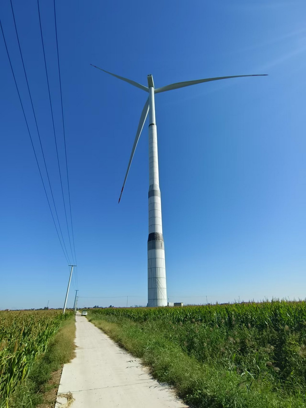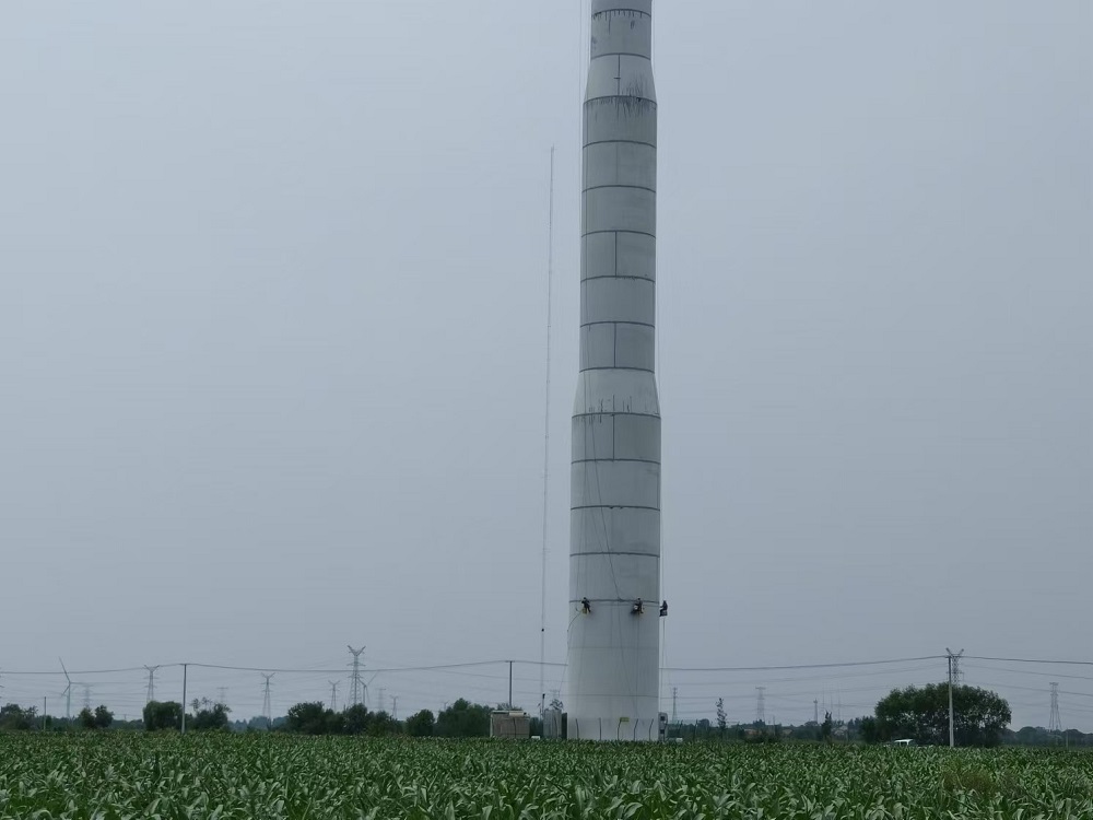 山东省德州市的中广核庆云尚堂风电场位于山东省德州市庆云县尚堂镇。WD195-5000型风电机组,混凝土部分为预制装配式结构,混塔总高110.03m,共28层。M01~M26高3.99m,M27高3.60m,M28高2.4m。M01~M07外径7800mm,M09~M14外径6600mm,M16~M28外径5400mm,M08、M15为过度节段。除门洞位置外,M01管片壁厚为300mm,M02~M27管片底部壁厚300mm,M28管片底部壁厚1050mm。M01~M15各由两个C型管片组成,通过竖缝插筋连接并灌浆,组成完整O型管片。管片M16~M28为完整的预制O型管片。我单位需对塔筒节间缝隙重新补胶,并对个别塔进行空鼓、掉块及裂缝进行修复。