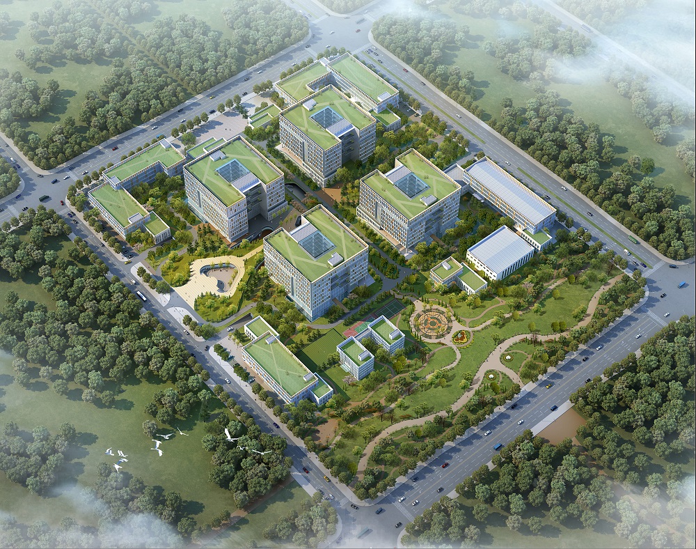 功能分区:本项目设计将4栋39.4米高的主要研发办公大楼放在场地正中,其它相关的办公、实验、服务配套等建筑围绕在其中周。