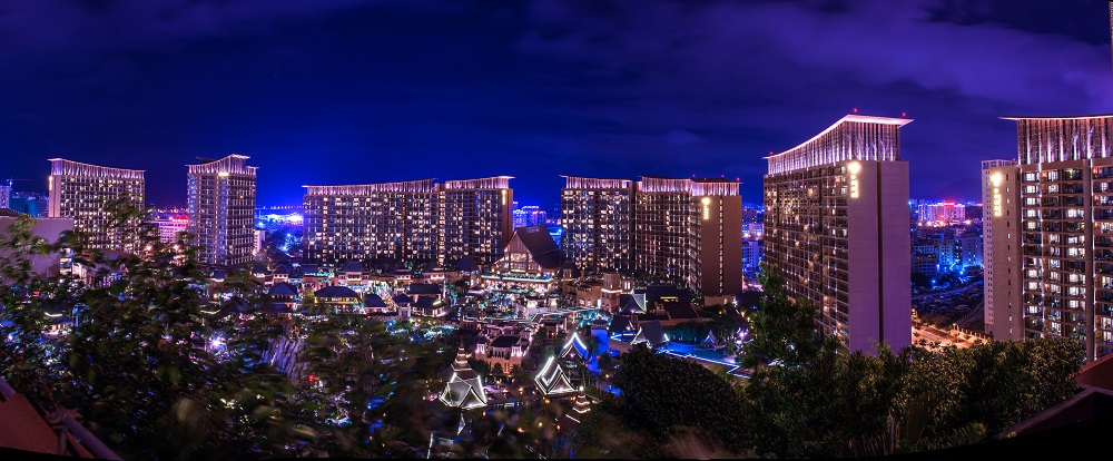 项目位于三亚市月川片区,距凤凰机场9公里,在未来三亚新的行政中心区附近,距离海滨大约2公里,总规划用地为26.50公顷,总建筑面积约68万平米,其中地上面积为44万平米,地下面积为24万平米,容积率1.77,建筑密度33.28%,绿地率40%,总停车位1636辆,五星级标准客房3725间。